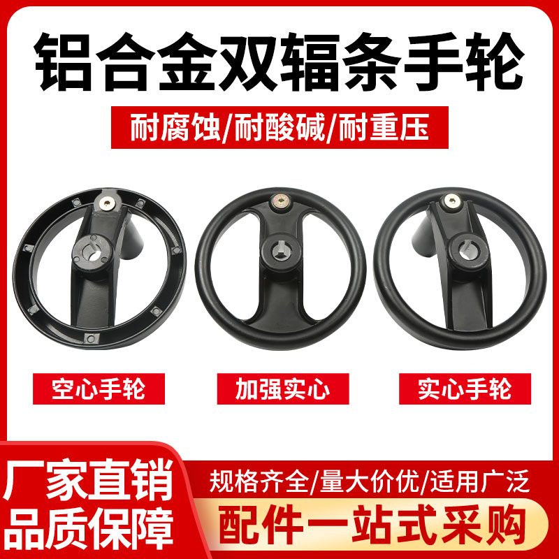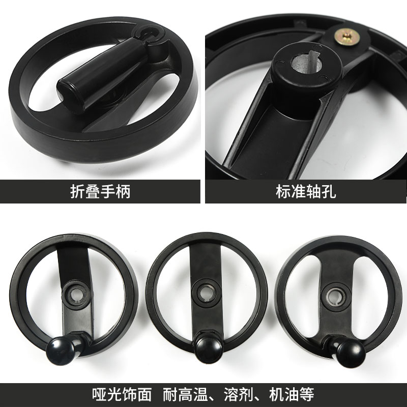 Aluminum alloy double-spoke folding handle machine tool handwheel thickened round black custom 100 125 160 200