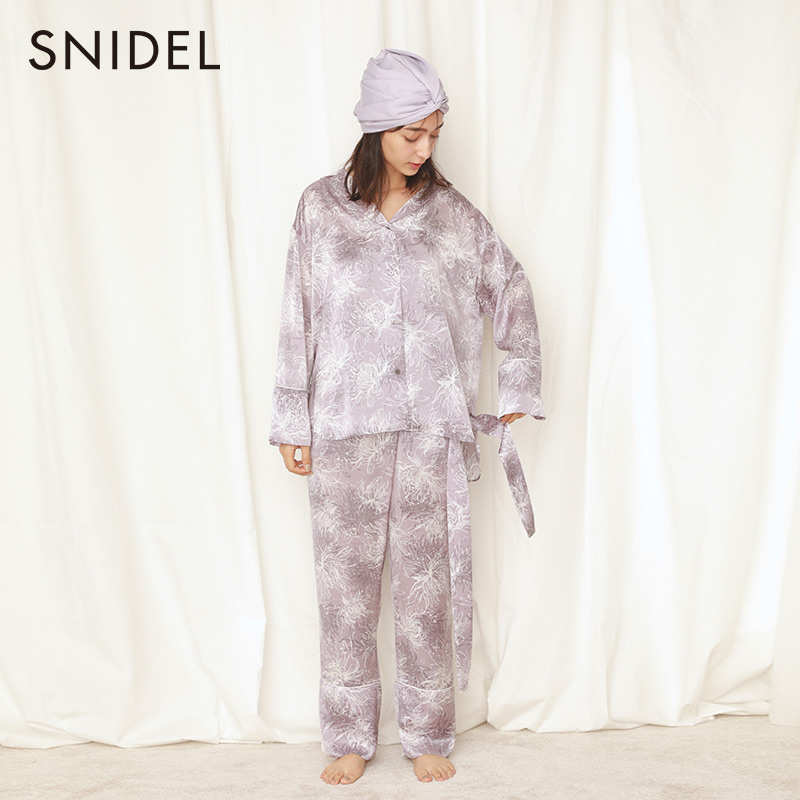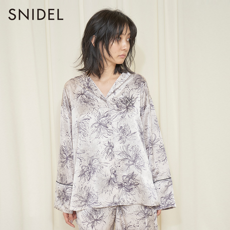 SNIDEL HOME 2021 Spring and summer new glossy satin flower printed shirt home wear SHFB211021