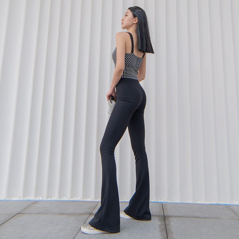 Flared trousers women's high-waisted slim drapey black autumn and winter new elastic all-match slim-fit mopping slack casual pants