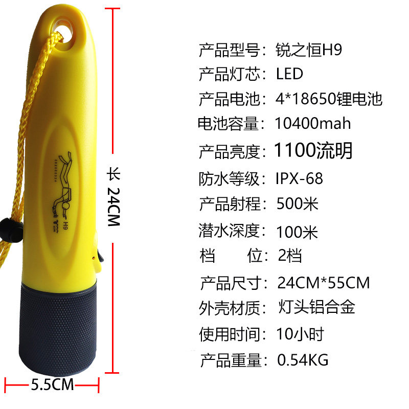 Professional high-light diving flashlight Long-range waterproof rechargeable underwater lighting Ultra-bright outdoor night diving fishing searchlight