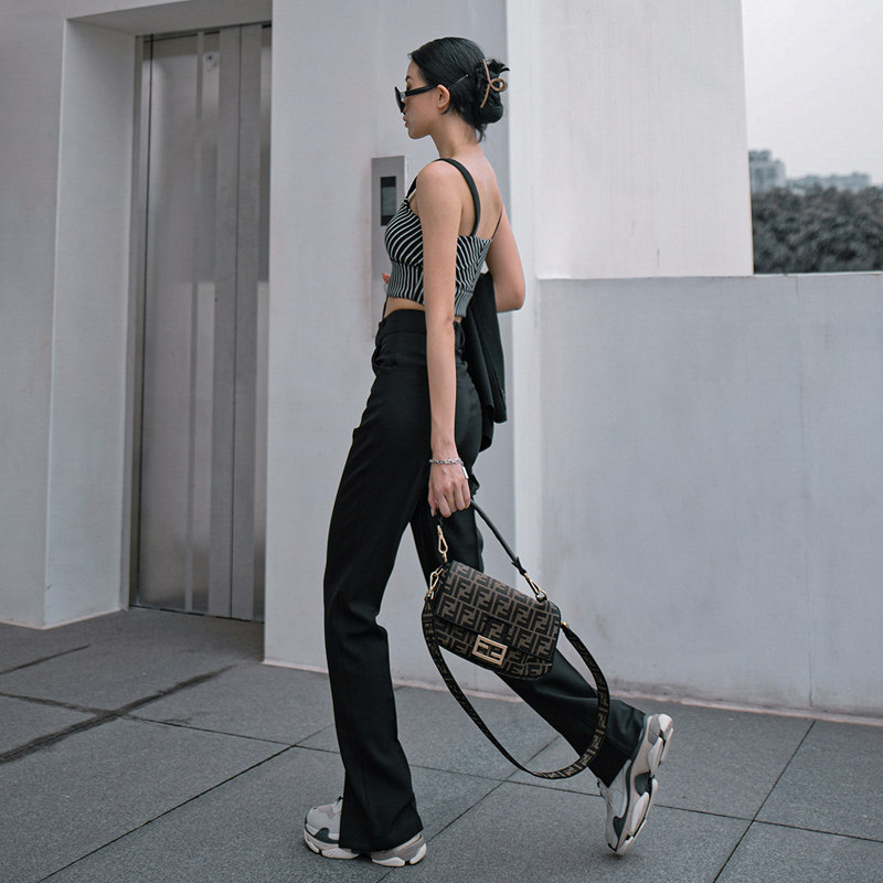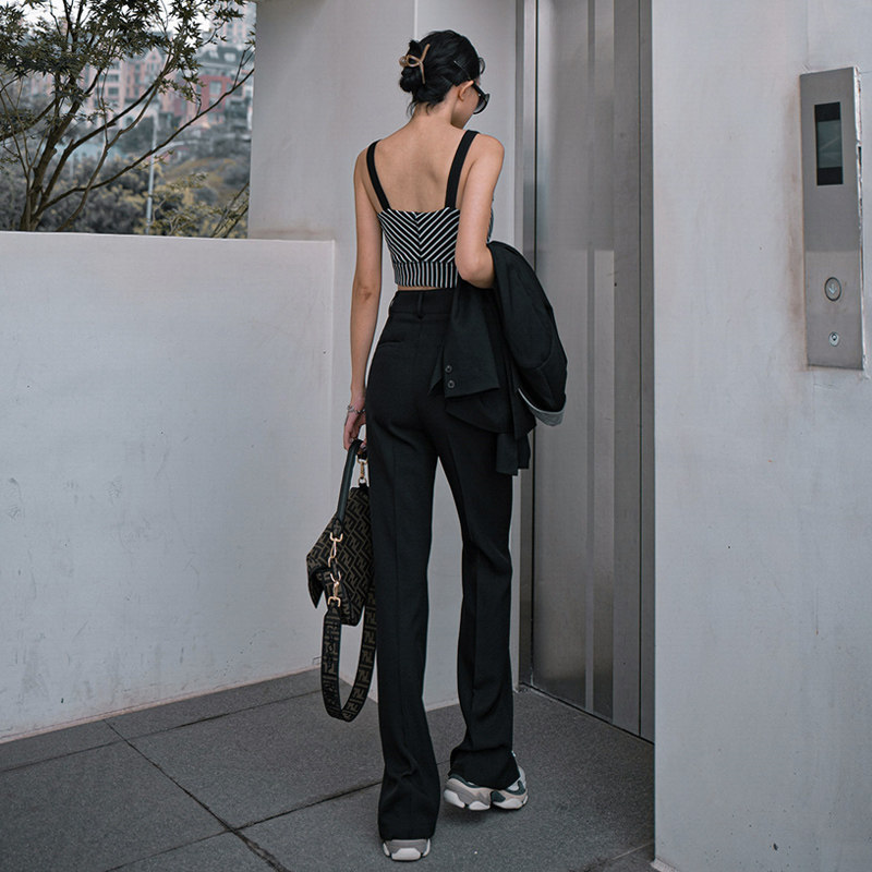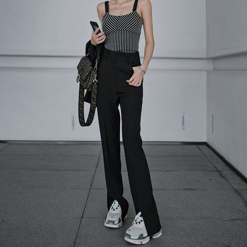 Front Open Fork Western Dress Pants Woman Straight Drum Loose Pendant Sensation Black Spring New slim fit high waist Drag ground casual pants