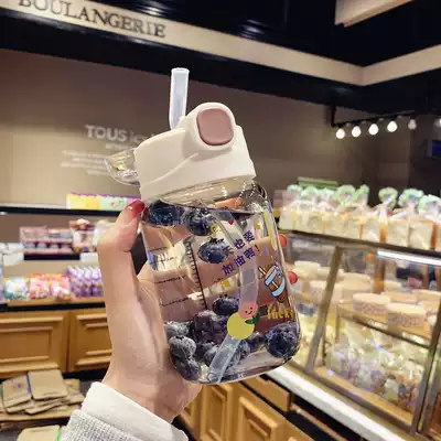 Hong Kong water cup creative cup with straw New portable cup with scale cute girl heart cup tide