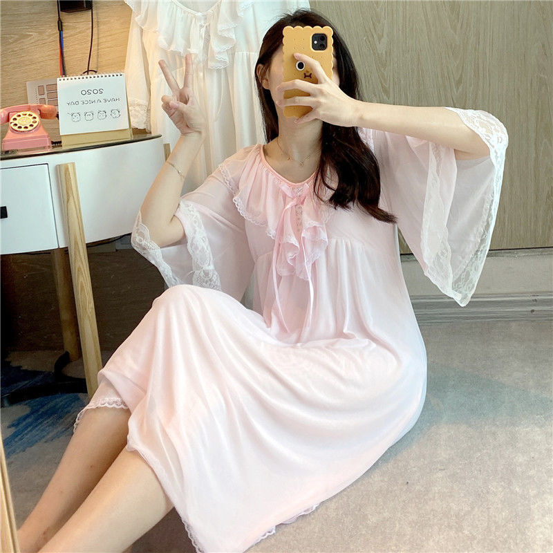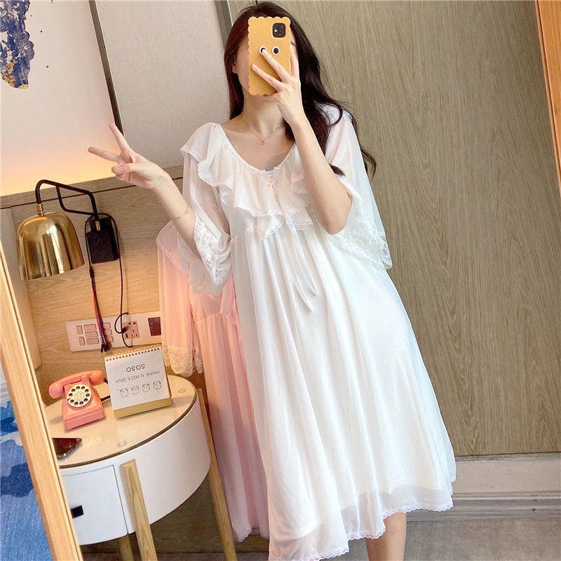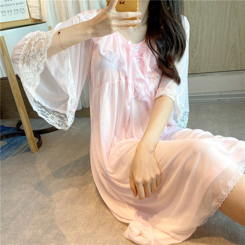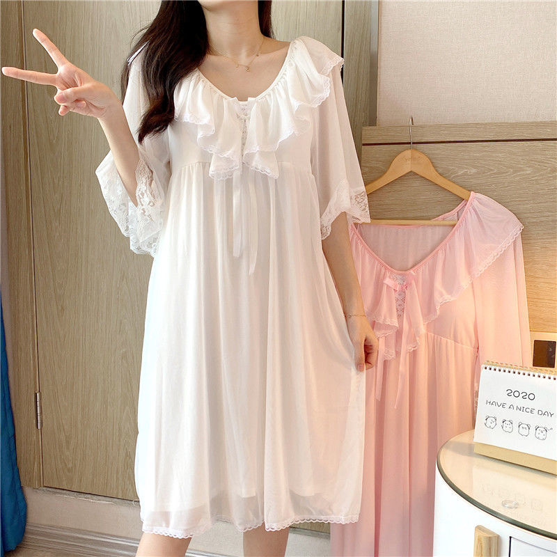 With Chest Cushion Princess Palace Wind Net Veil Modale Cotton Short Sleeve Sleeping Dress Lady Summer Thin new pyjamas