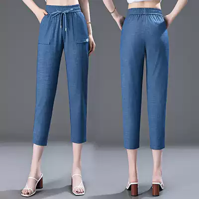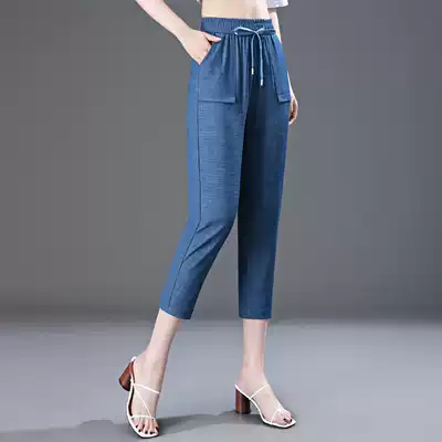 Eight-point tencel jeans women's summer 2021 new loose and thin seven-point harem pants thin ice silk women's pants