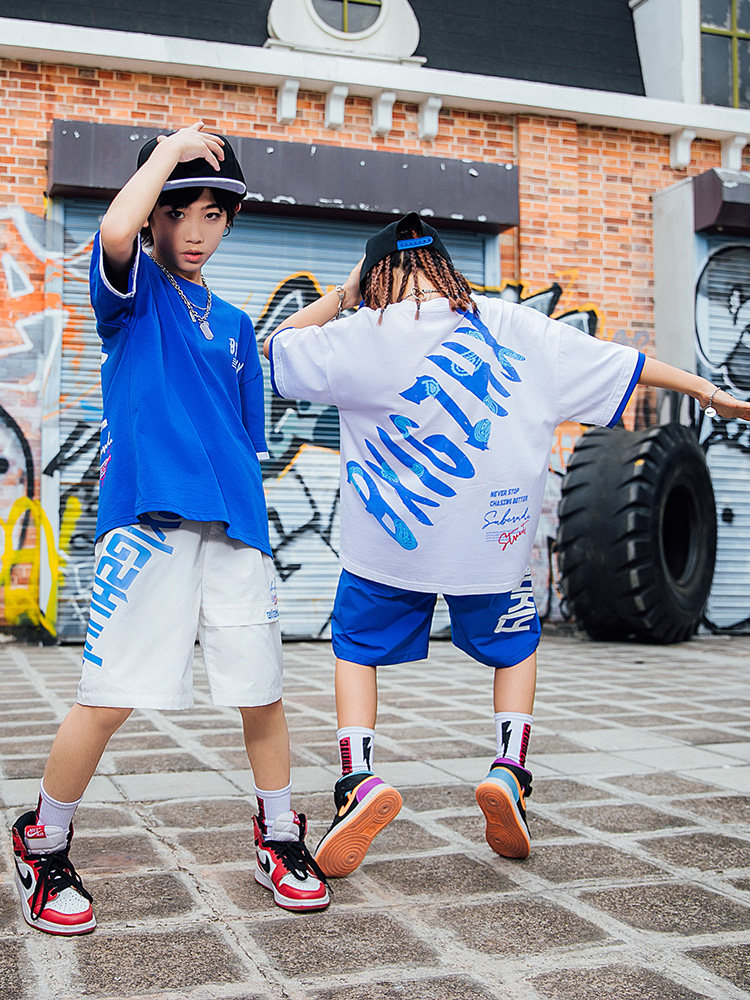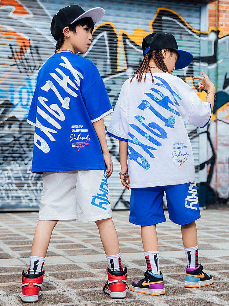 Hip-hop suit boys and children trendy clothes hip-hop style summer short-sleeved suit handsome tops Liuyi costumes T-shirts