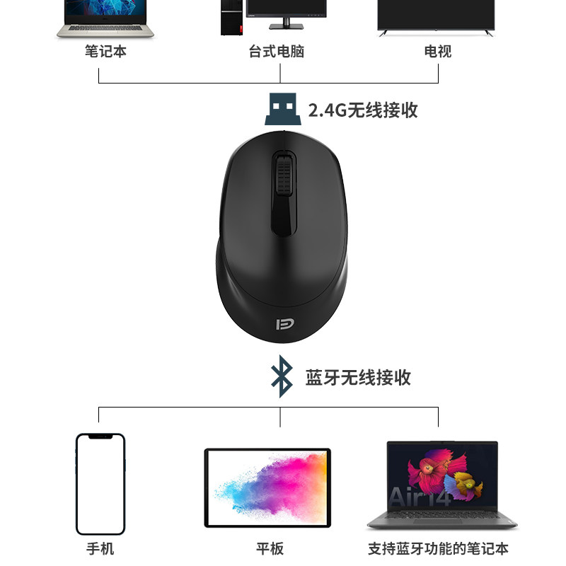 Mobile phone Bluetooth Mouse Mouse Tablet Desktop Notebook 2 4G Wireless Mouse Mute applicable Huawei Lenovo, etc.