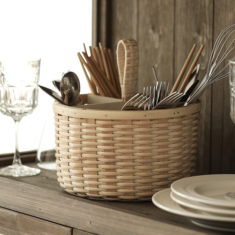 Indonesian white rattan basket storage basket household compartment storage basket coffee table desktop storage box remote control round storage