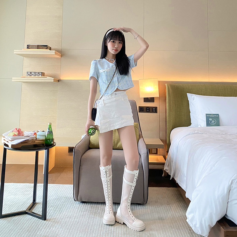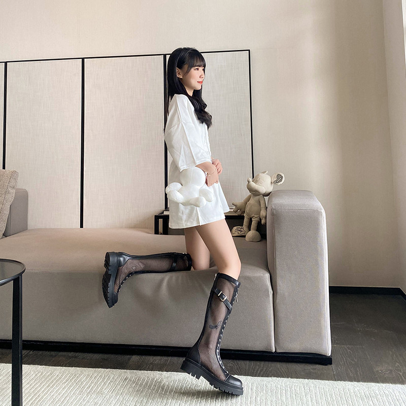 Net Yarn Retro Cool Boots Thick Bottom Mesh Boots Hollowed-out High Cylinder Riding Boots Long Cylinder Martin Boots Summer Thin lady Long boot