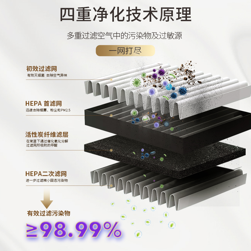 Removal of formaldehyde in addition to elimination of peculiar smell filtration dust germicidal absorption of TVOC gas
