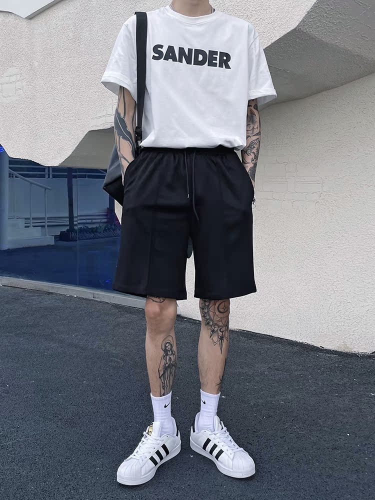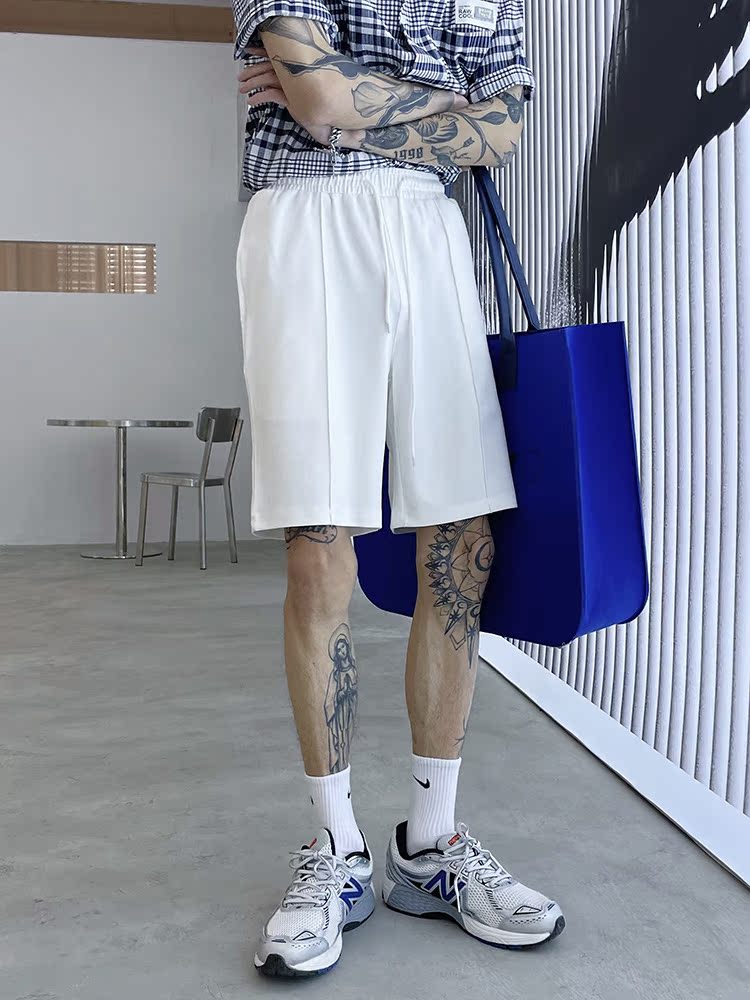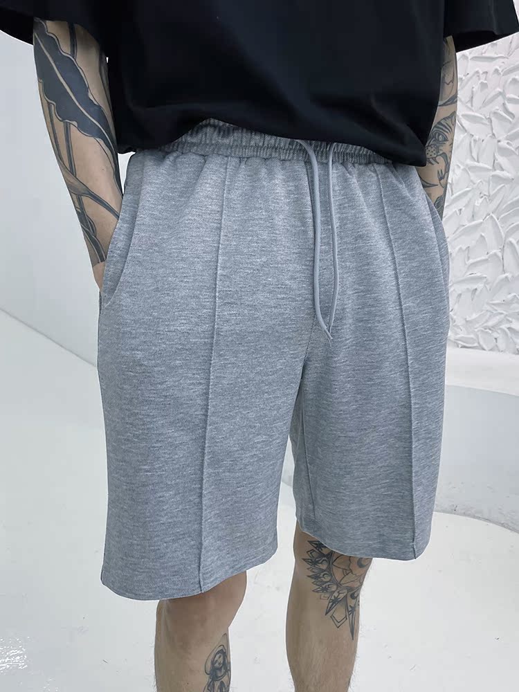(Love to wear) Knitted casual five-point shorts men's ins solid color straight loose loose all-match simple sanitary pants mid-pants