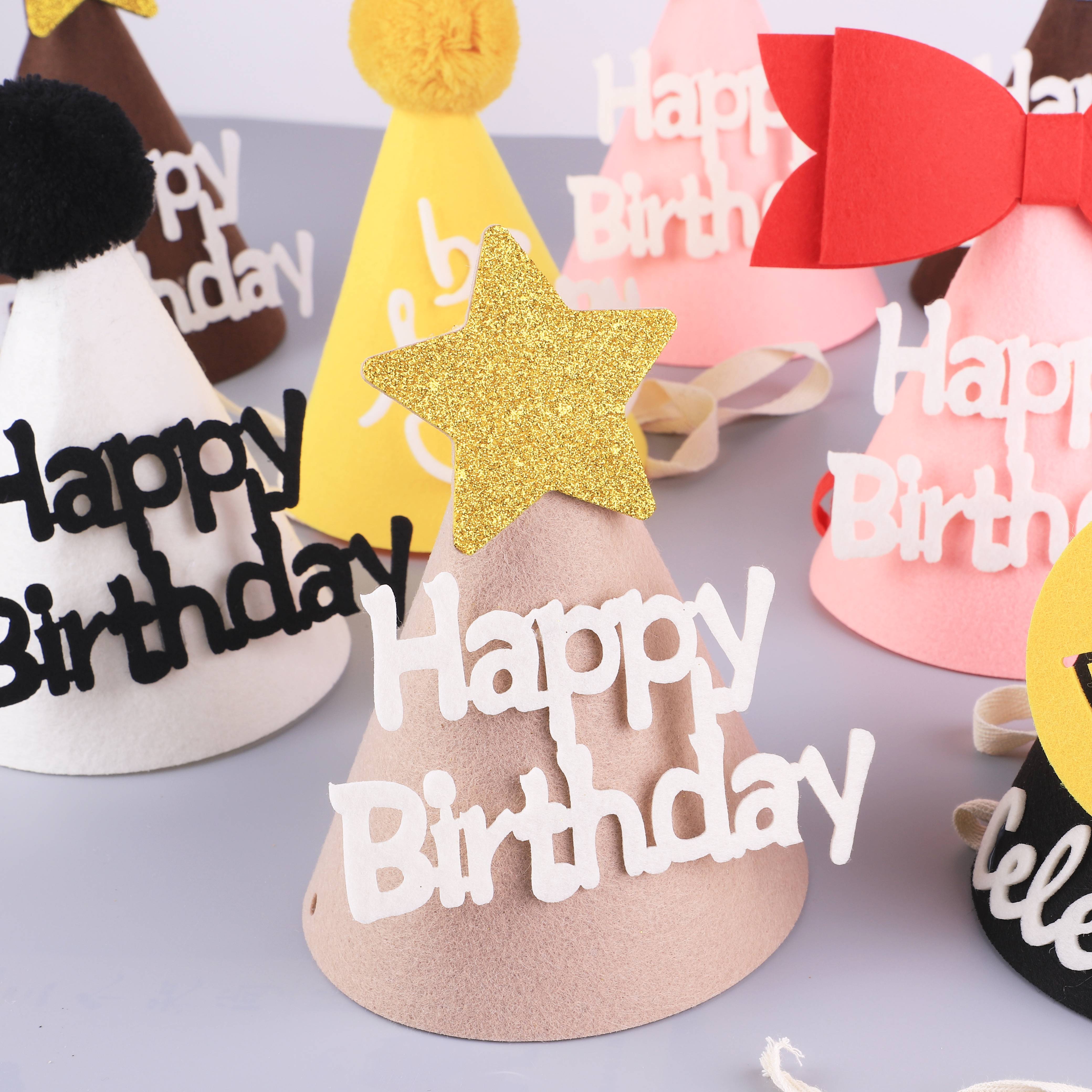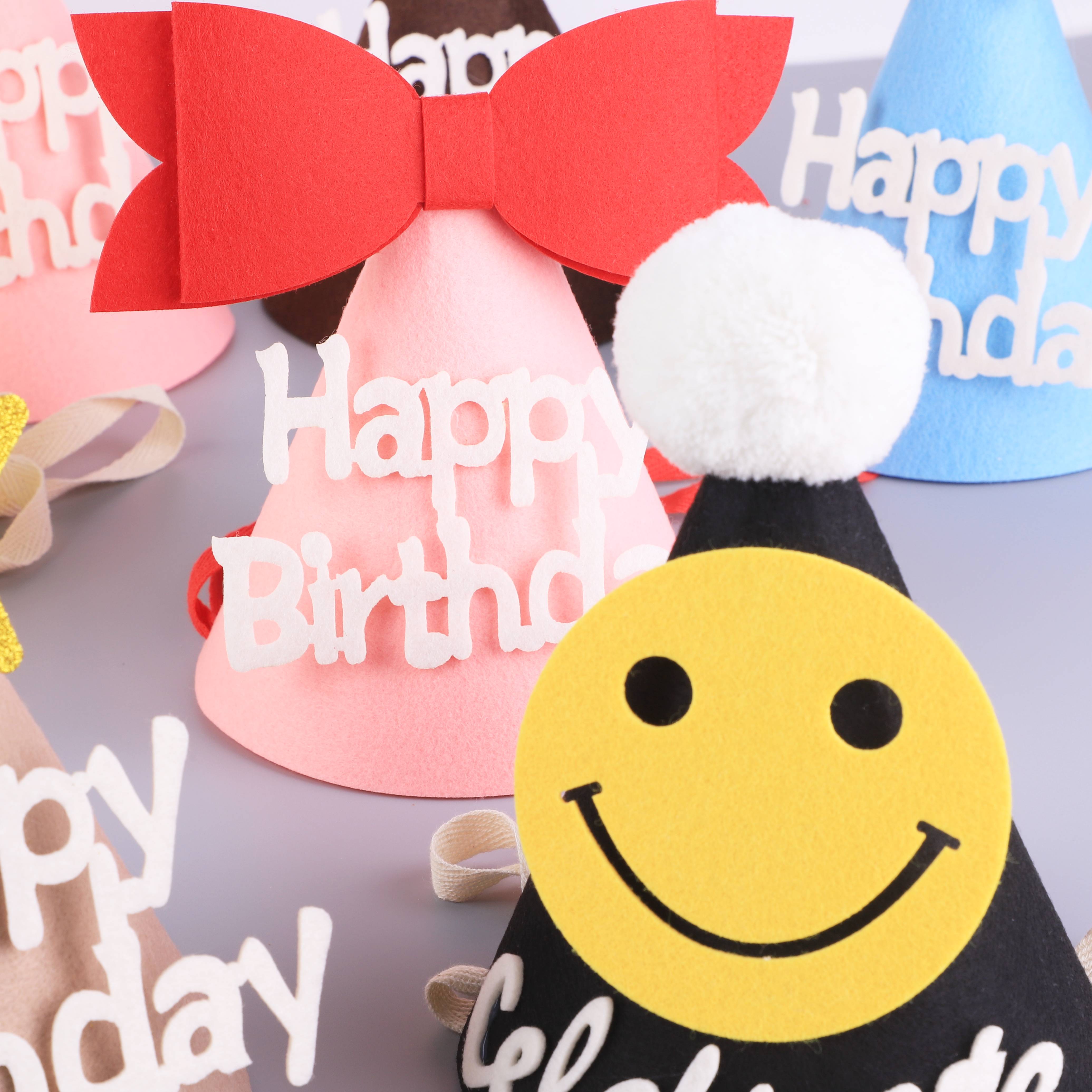ins felt birthday hat cake smiley face bow baby children's birthday funny party little pointy hat