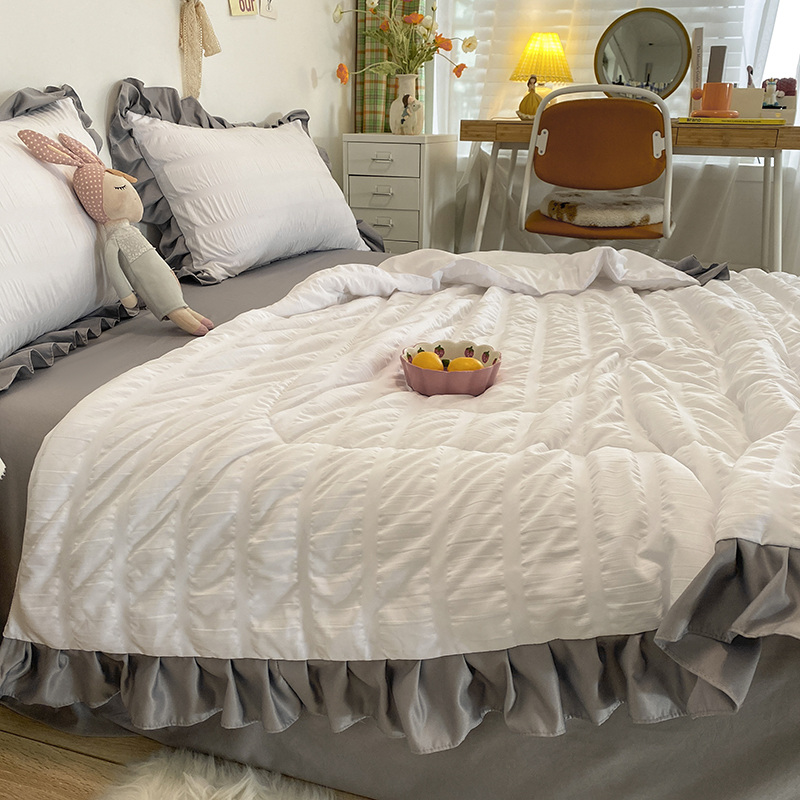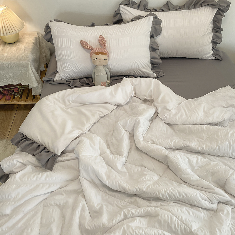 Korean-style lazy princess white bubbler summer quilt four-piece jacket cotton breathable soft bedroom single piece air conditioning quilt