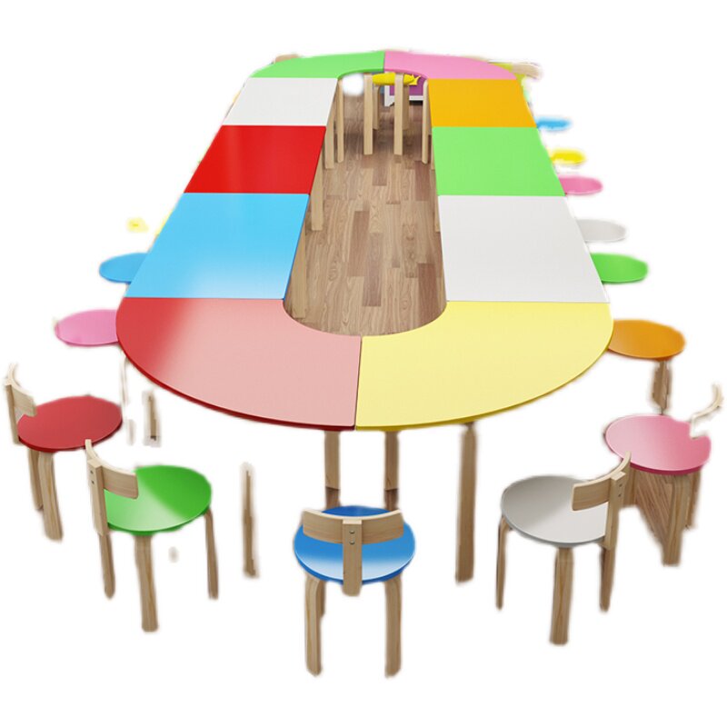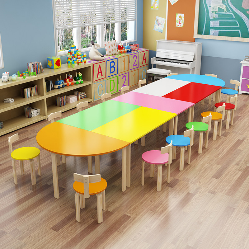 Solid wood kindergarten class table and chairs Early teaching child care class Children toddler painting room Painting table fine art table training table