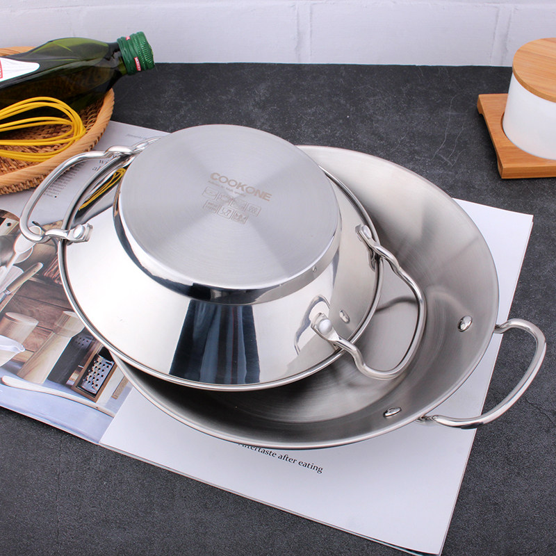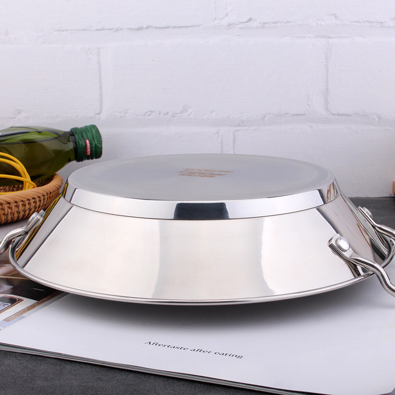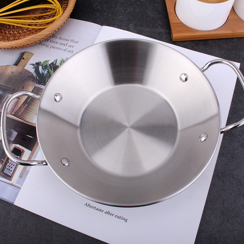 304 stainless steel double handle double bottom seafood pot household dry pot frying pan risotto plate fried chicken plate crayfish plate