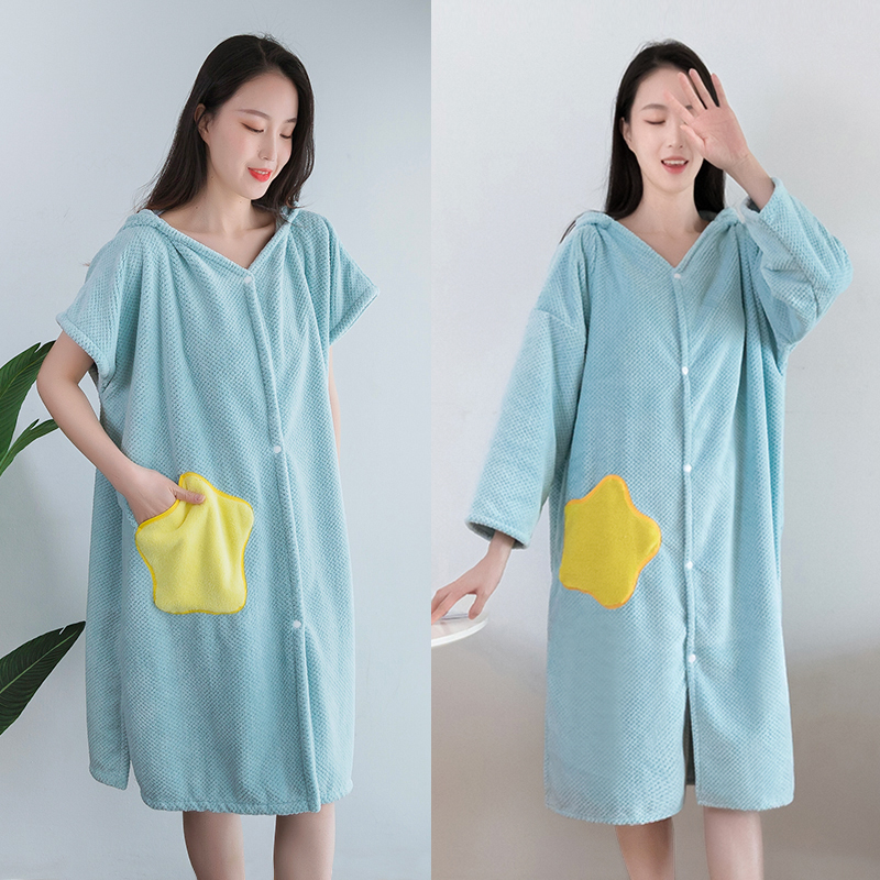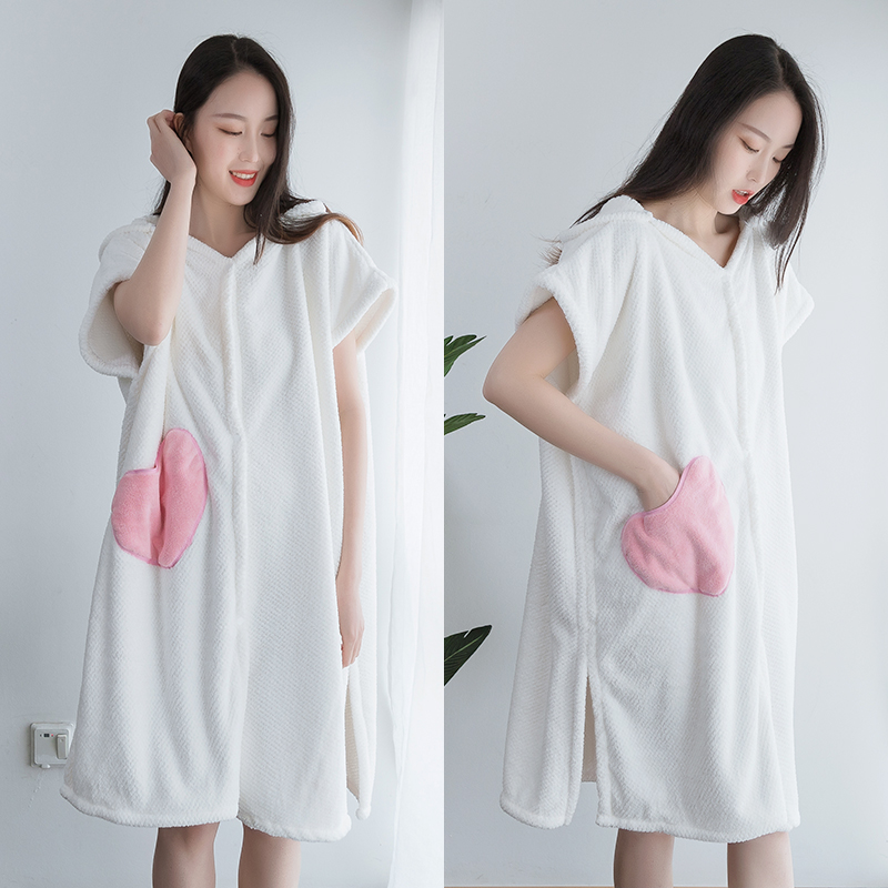 Can wear bath towel with hat home women can wrap the new style than pure cotton water absorption fast drying is not easy to fall off the cape bath skirt