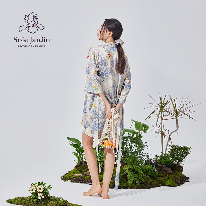 soie jardin 3# Hot Sell Classic Style Silk Flower Printing Summer Short Silk Skirtake Sleeping Robby