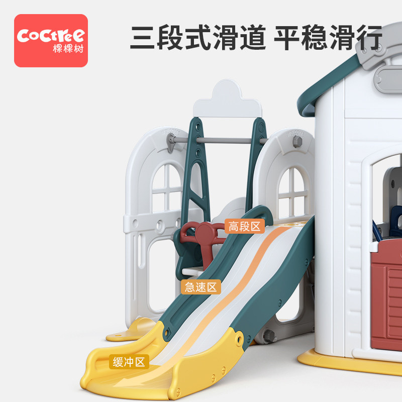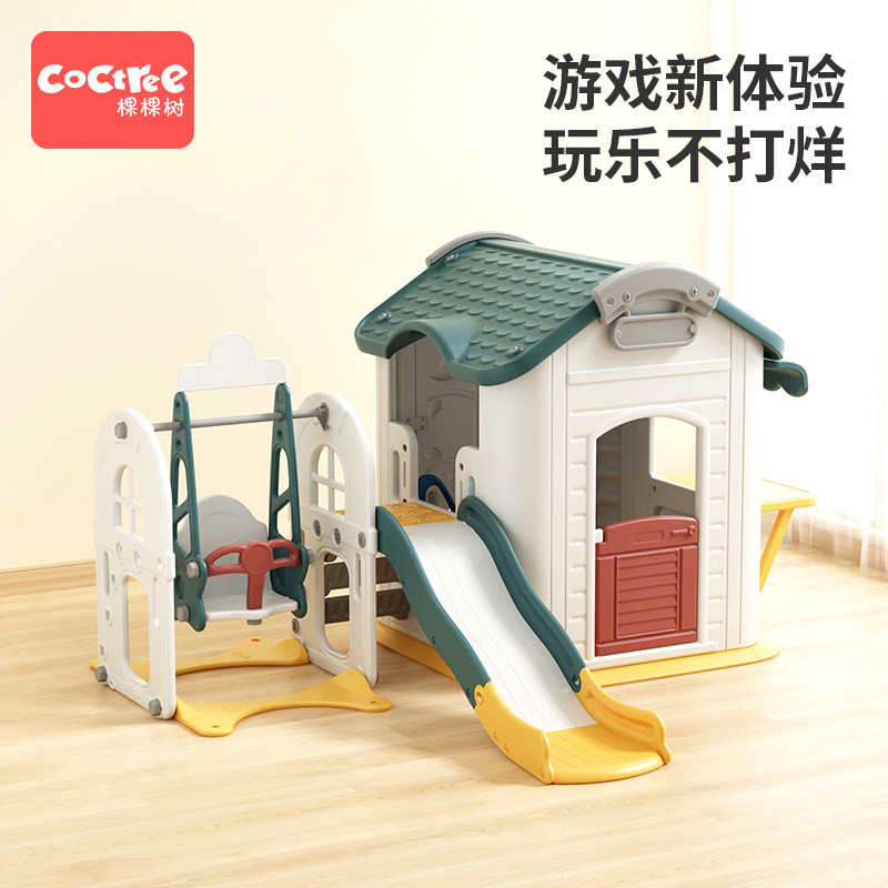 Multifunctional game house (side slide) with tables and chairs Multifunctional game house (straight slide) with tables and chairs Multifunctional game house (slide swing) with tables and chairs