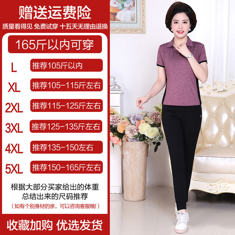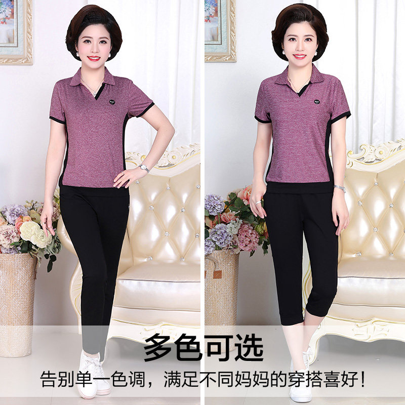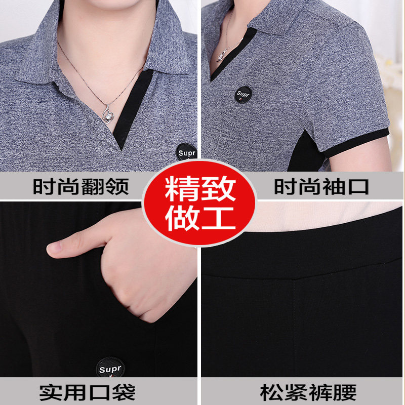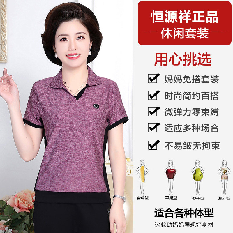 Hengyuanxiang middle-aged and elderly short-sleeved T-shirt female middle-aged mother summer sports suit foreign style leisure two-piece thin