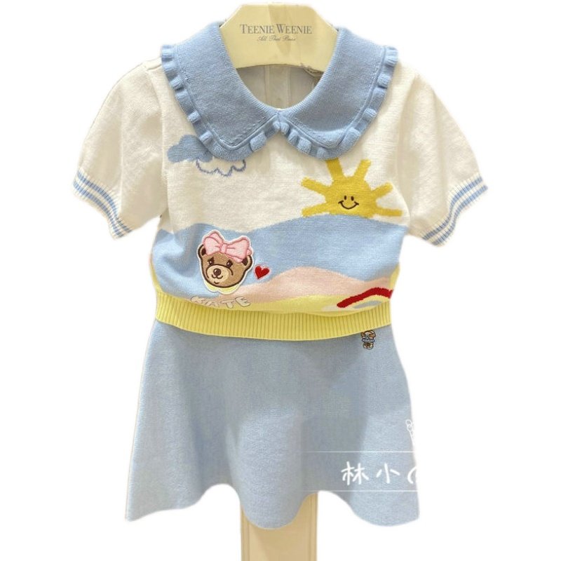 21 summer style teenie weenie small bear girl clothes baby sweaters knitted cover skirt TKCZ212351B suit