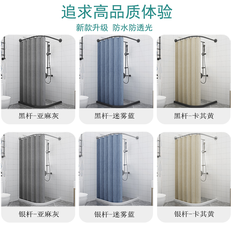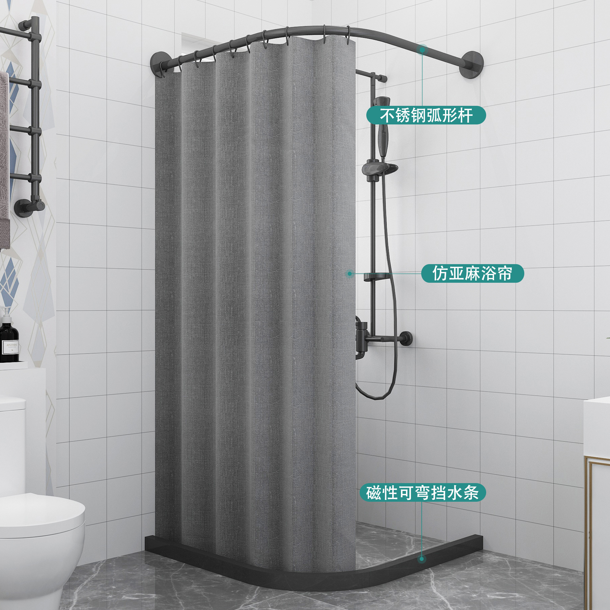 Bathroom waterproof shower curtain set free punch dry and wet separation powder room magnetic suction water strip bath partition arc rod