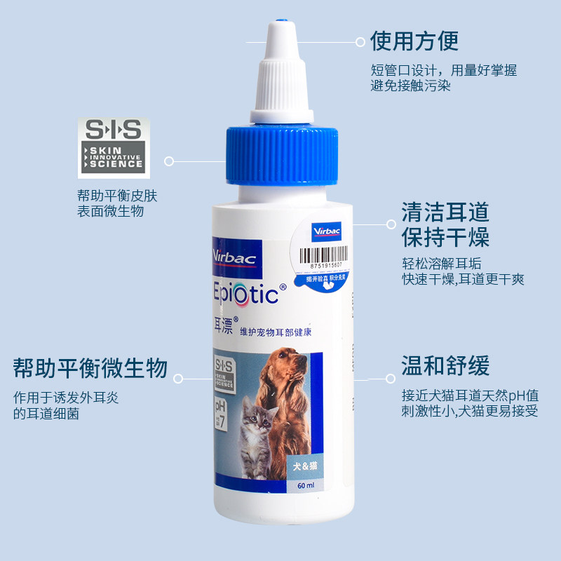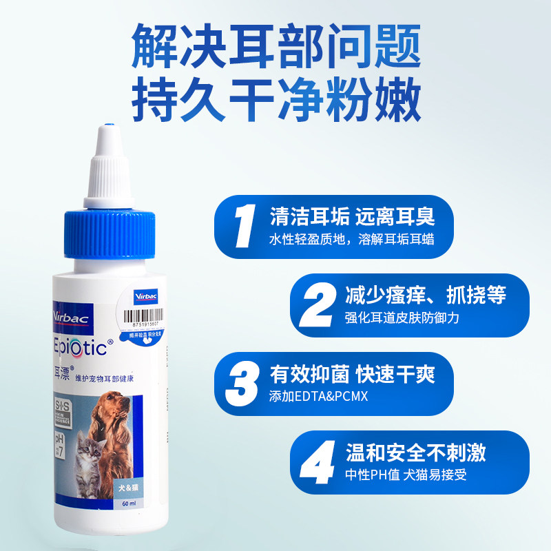 French Vic ear bleach 60ml pet cat ear drops dog removal ear mites ear wash cat cleaning supplies