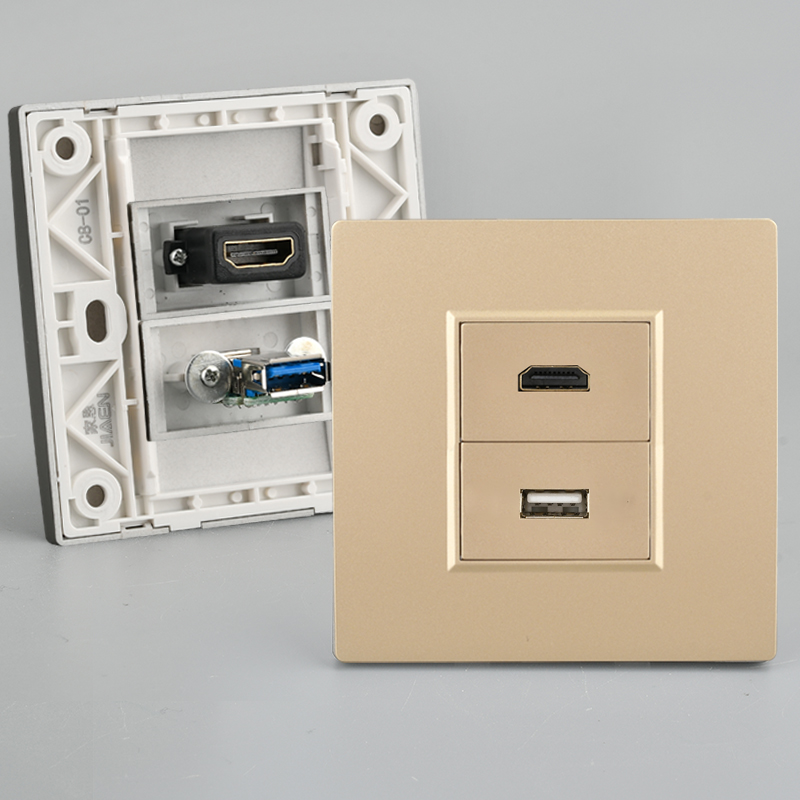 Multimedia high-definition cable network line data cable HDMI socket panel with USB data interface computer network panel