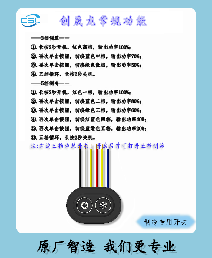 Refrigeration switch double-press multi-gear controlled temperature-controlled speed-wide current intelligent waterproof silica gel can be sewn with multi-energy