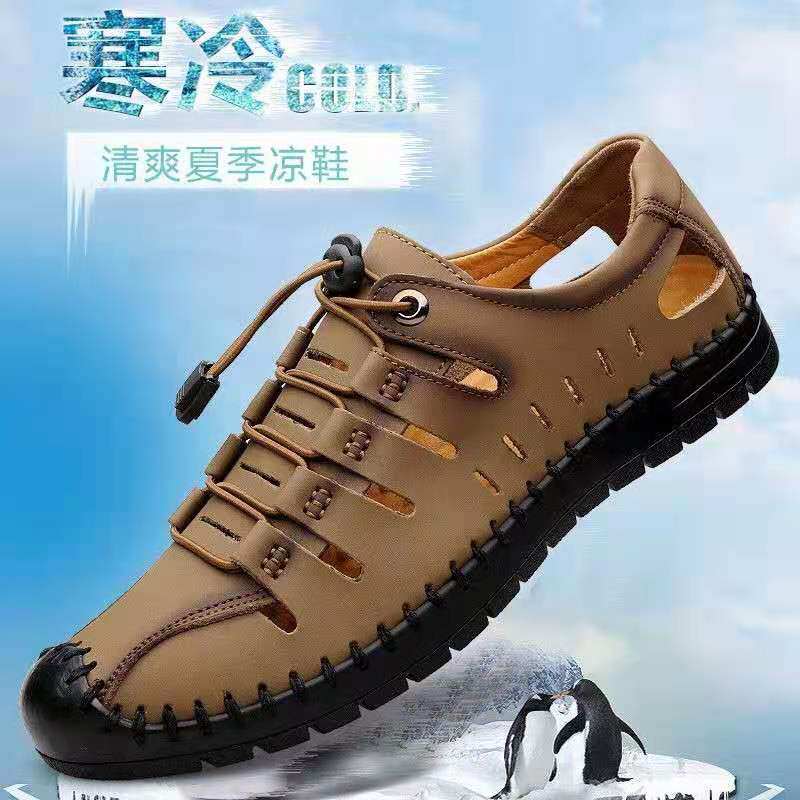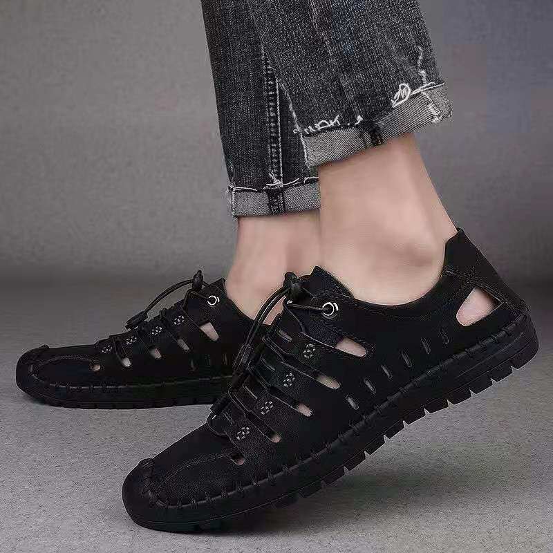 Genuine leather cowhide summer men's sandals beach outdoor leather sandals men's hole shoes soft bottom breathable casual shoes ins tide