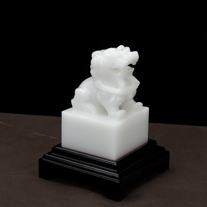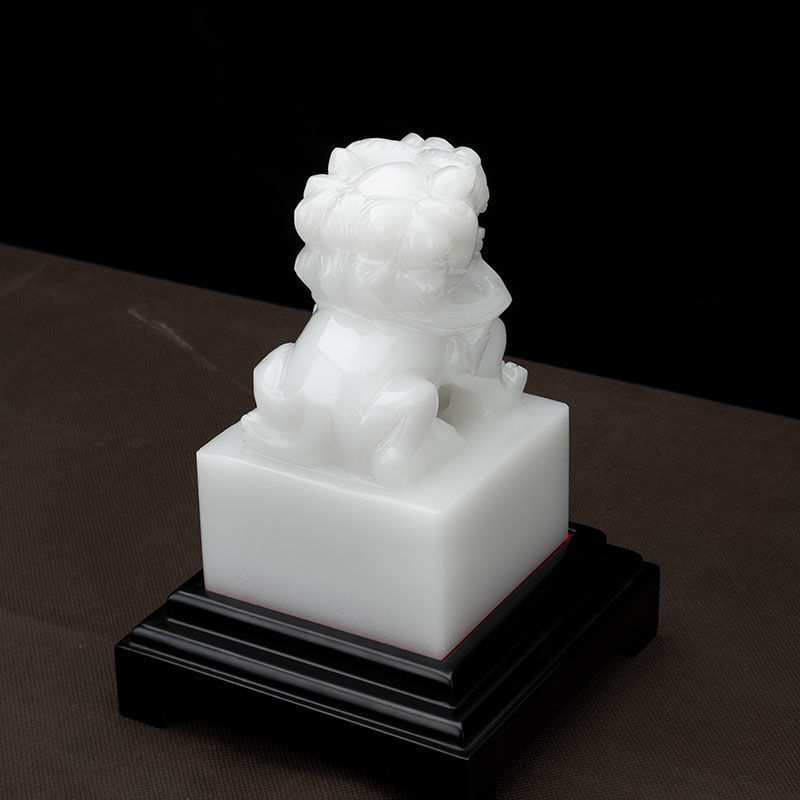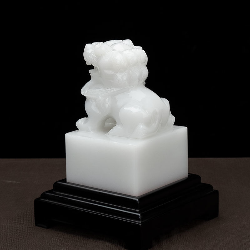 Wangfulai White Jade Lion Seal Natural Jade Official Seal Jade Seal Large Business Gift Opening Housewarming Gift