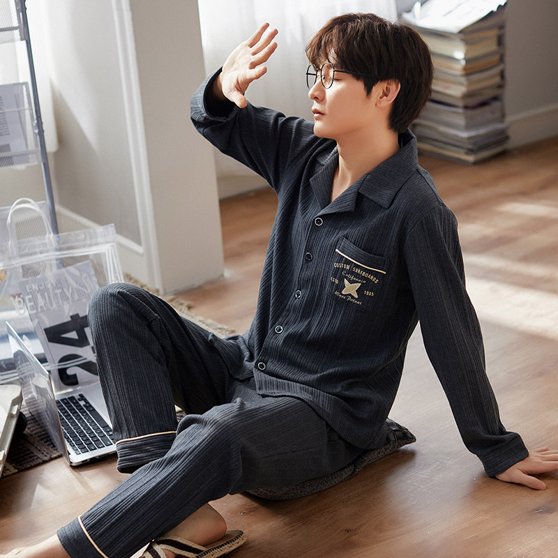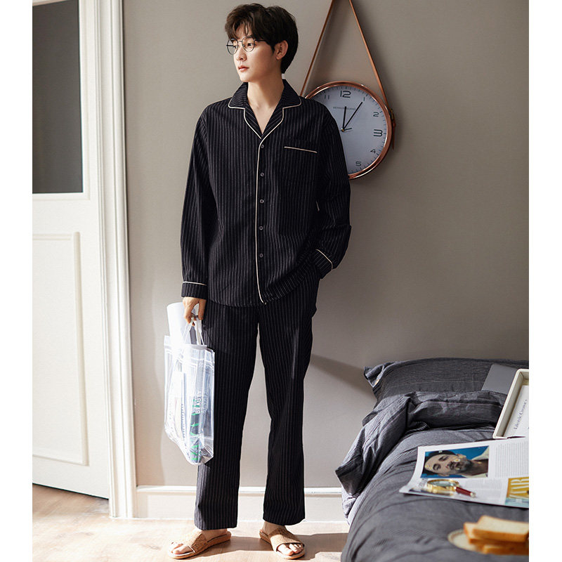Palace Butterfly Sleepwear Men's Spring Autumn Season Pure Cotton Thin section Long sleeves 2022 New striped men's large size Sizes Home Suit Suit