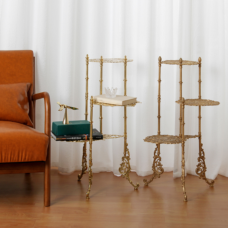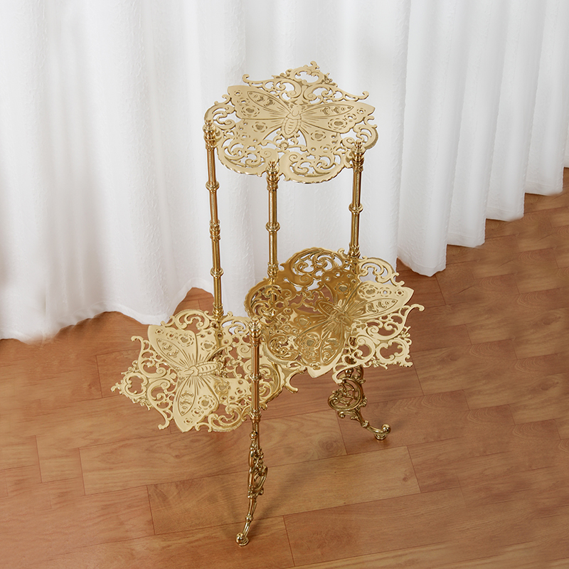 Brass retro butterfly shelving carved hollowed floor multilayer edge Several containing layers Shelf Far-style art metal bookshelf