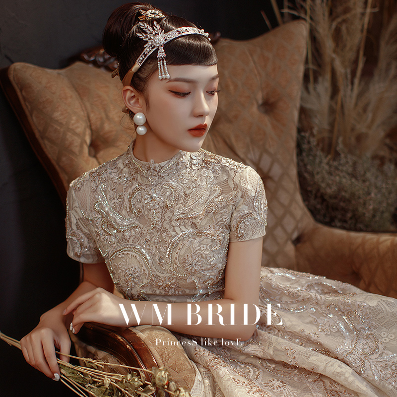 Banquet bride evening dress female 2021 new style preside over high-end wedding light luxury minority high-end engagement dress