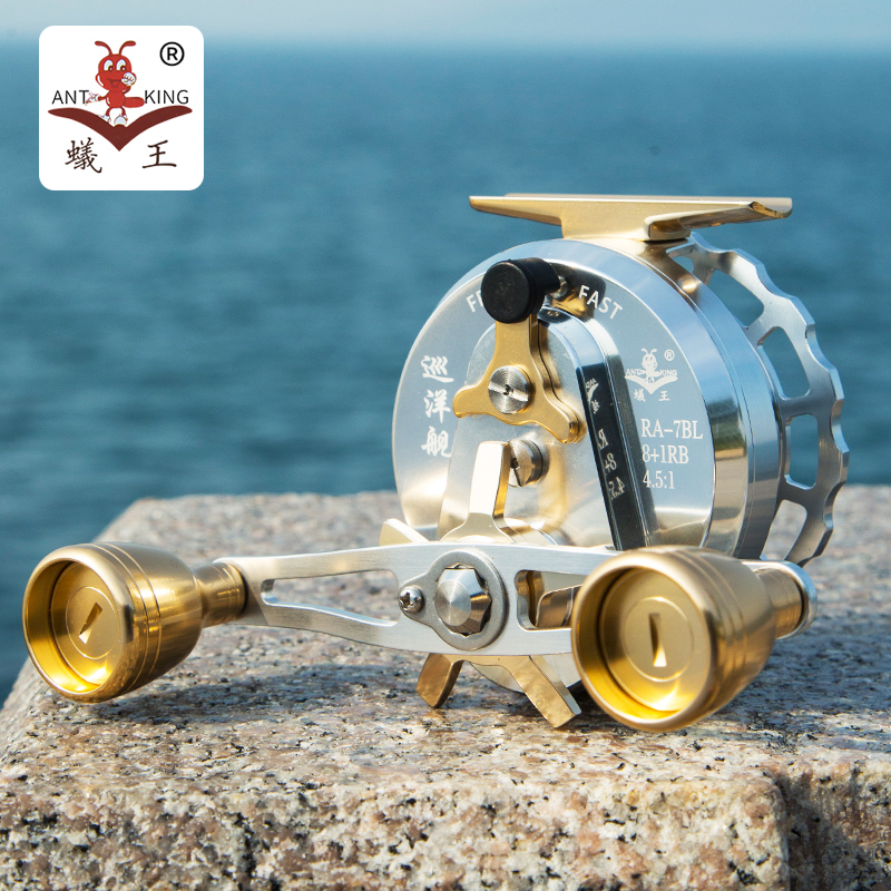 The direction of the handle of the fishing wheel: