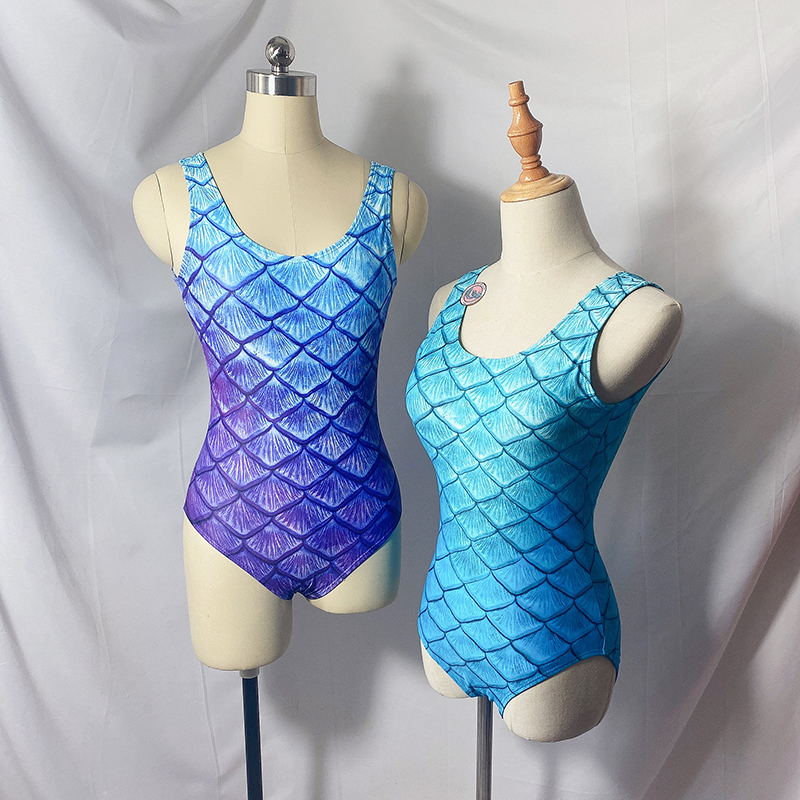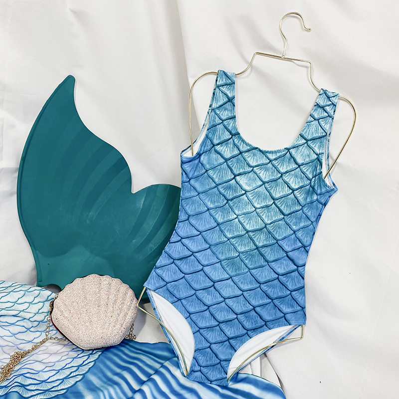 Mermaid even body bathing suit sunscreen for free diving, baby bag chest cushion Triangle swimsuit blue No steel ring