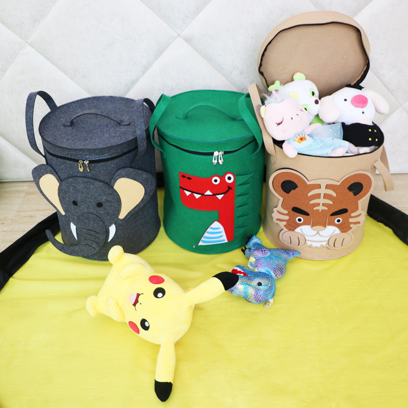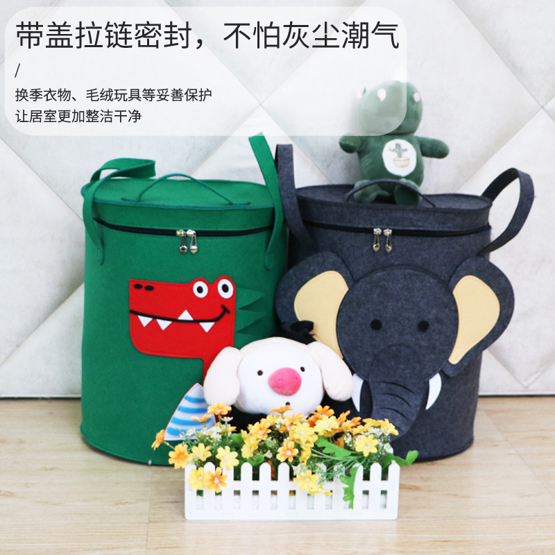 Washable cartoon toy storage bag children's toy storage basket felt dirty clothes basket sundries storage box felt bucket