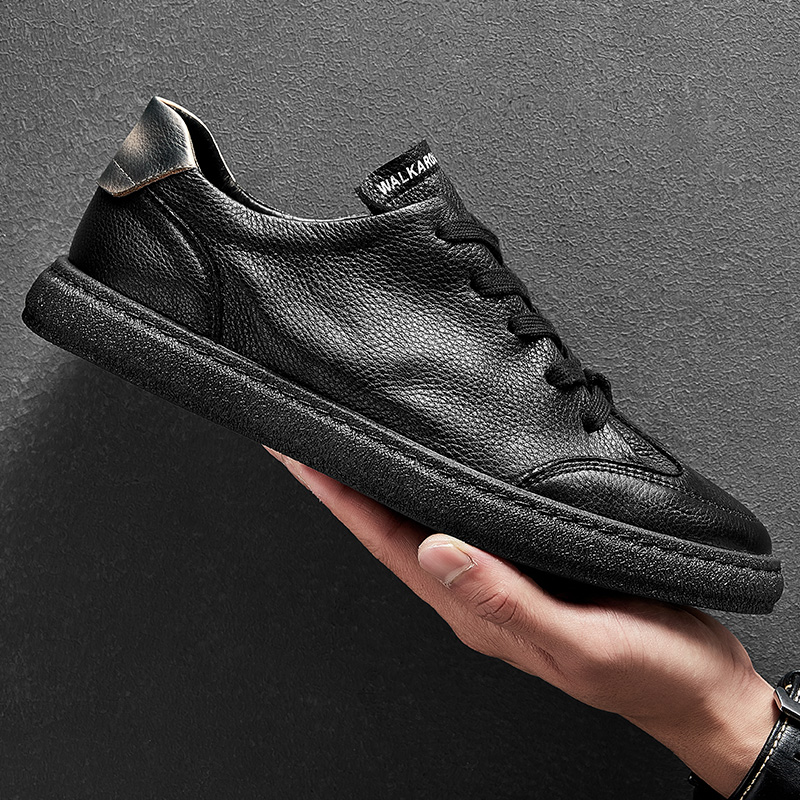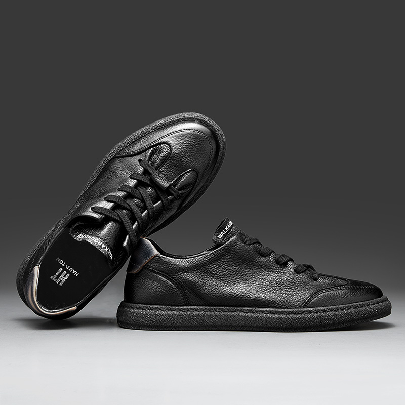HT Haoton men's shoes autumn breathable low-top shoes 2022 all-match thin black sneakers men's leather casual leather shoes