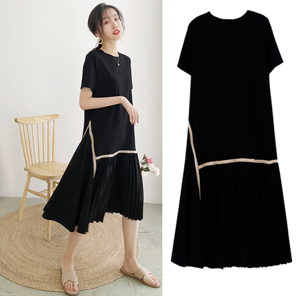 Pregnant Woman Summer Clothing Suit Stylish Summer Ocean Dress Boomer Short Sleeve Out Medium Long Version Loose Summer Dress