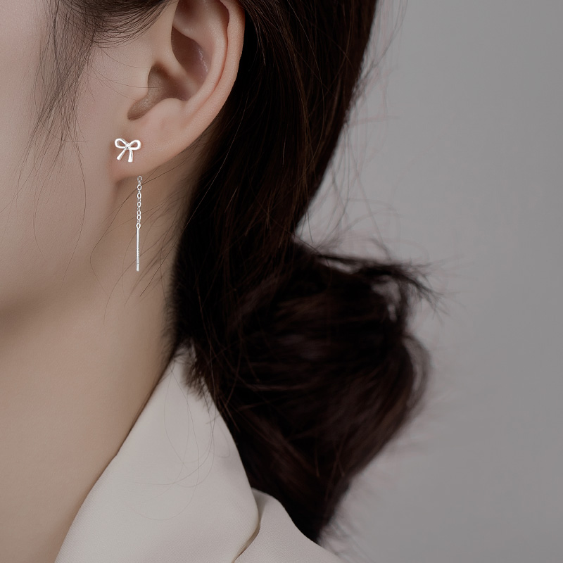 S925 sterling silver bow earrings tassel short temperament earrings earrings suitable for summer 2022 new trend
