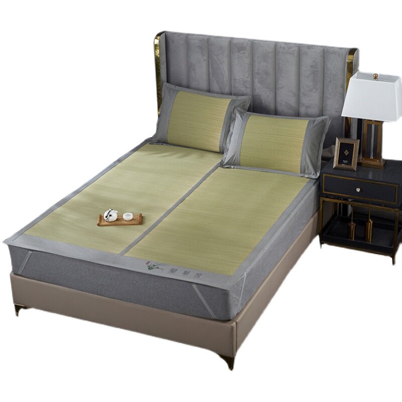 Cool mat thickened rush mat folding three-piece set 1 5 m 1 8m double bed summer ice silk mat dual-purpose bluegrass