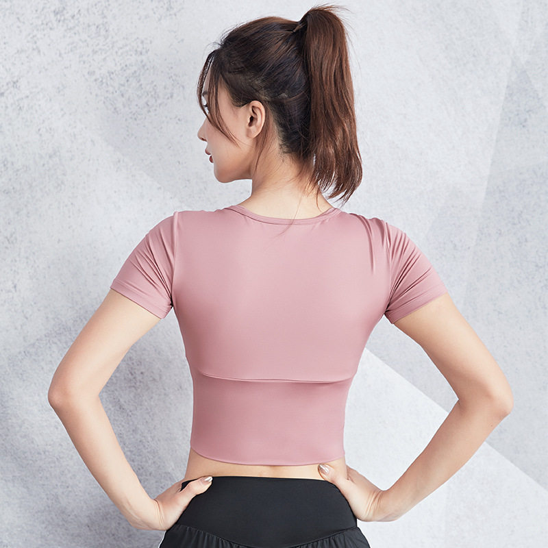 Clothes sports top women's summer sexy navel quick-drying running fitness short-sleeved tight-fitting elastic yoga t-shirt women