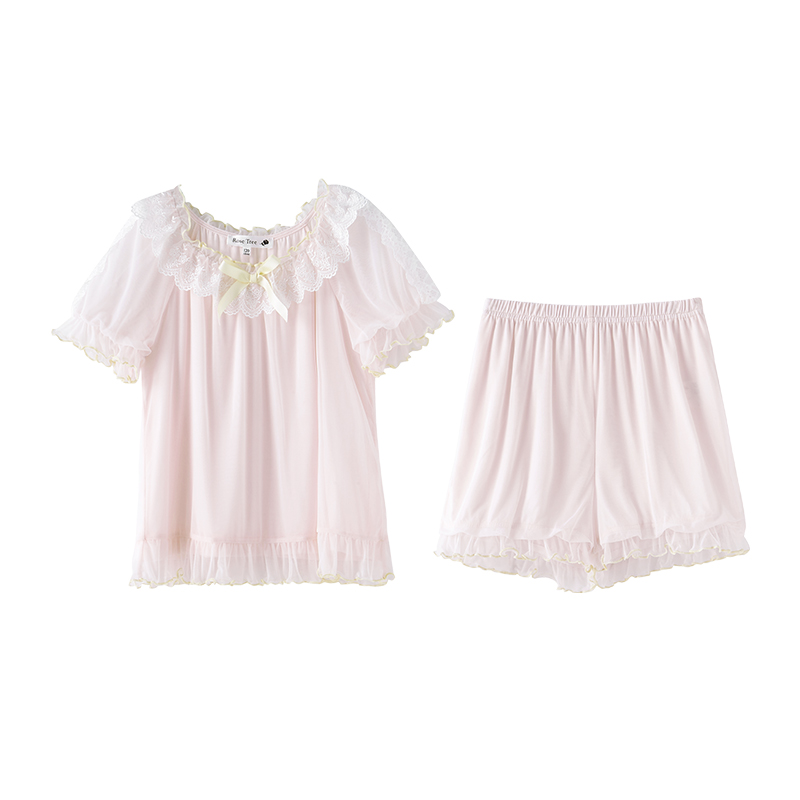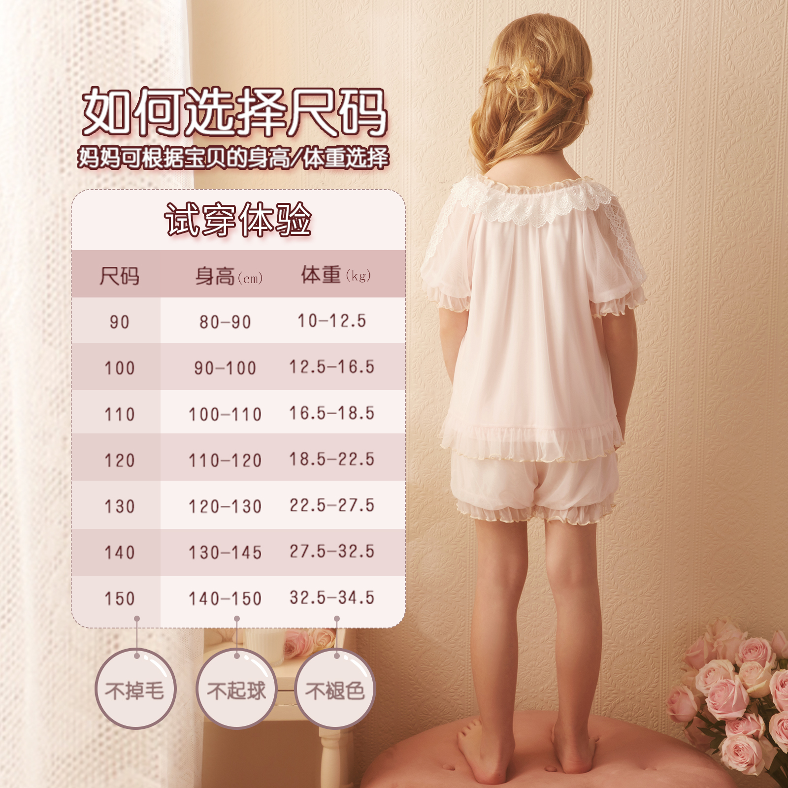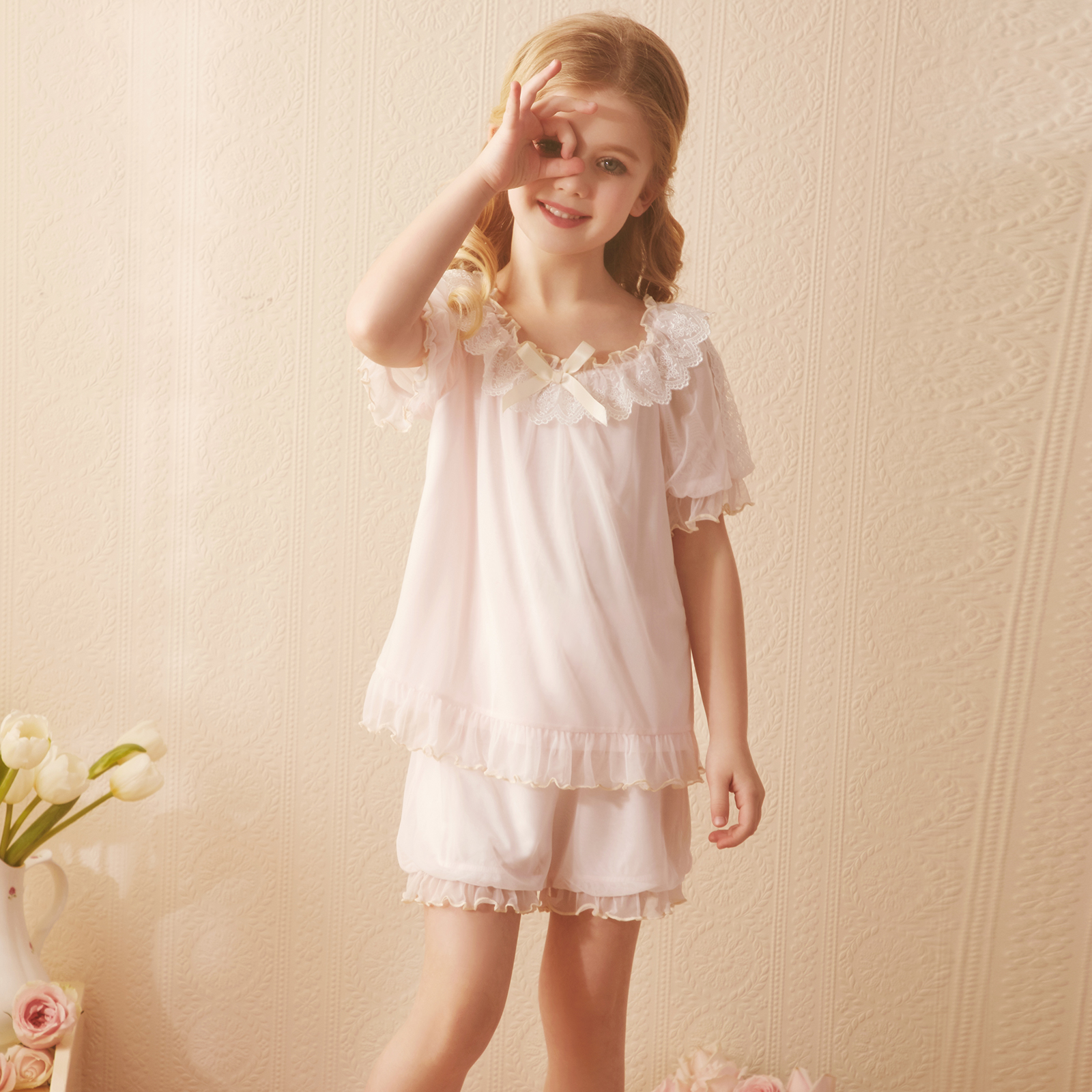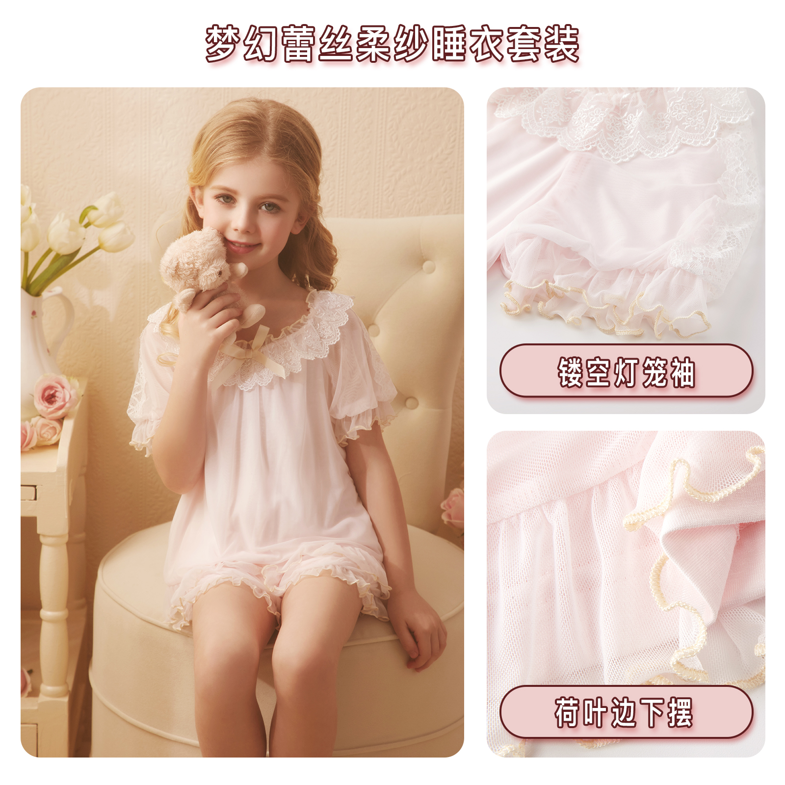 Roosetree Girl Sleepwear Summer Thin Lace Princess Wind Baby Short Sleeve Suit Cute Children's Home Clothes