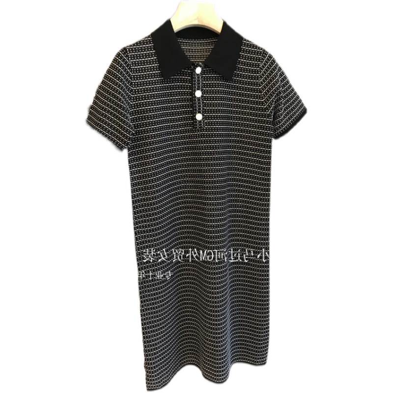 Brand Fold Discount Store Mall Special Cabinet Withdrawal Women's Tail Goods Clear Cabin Geometric Jacquard Polo Collar Short Sleeve Foreign Dress Woman