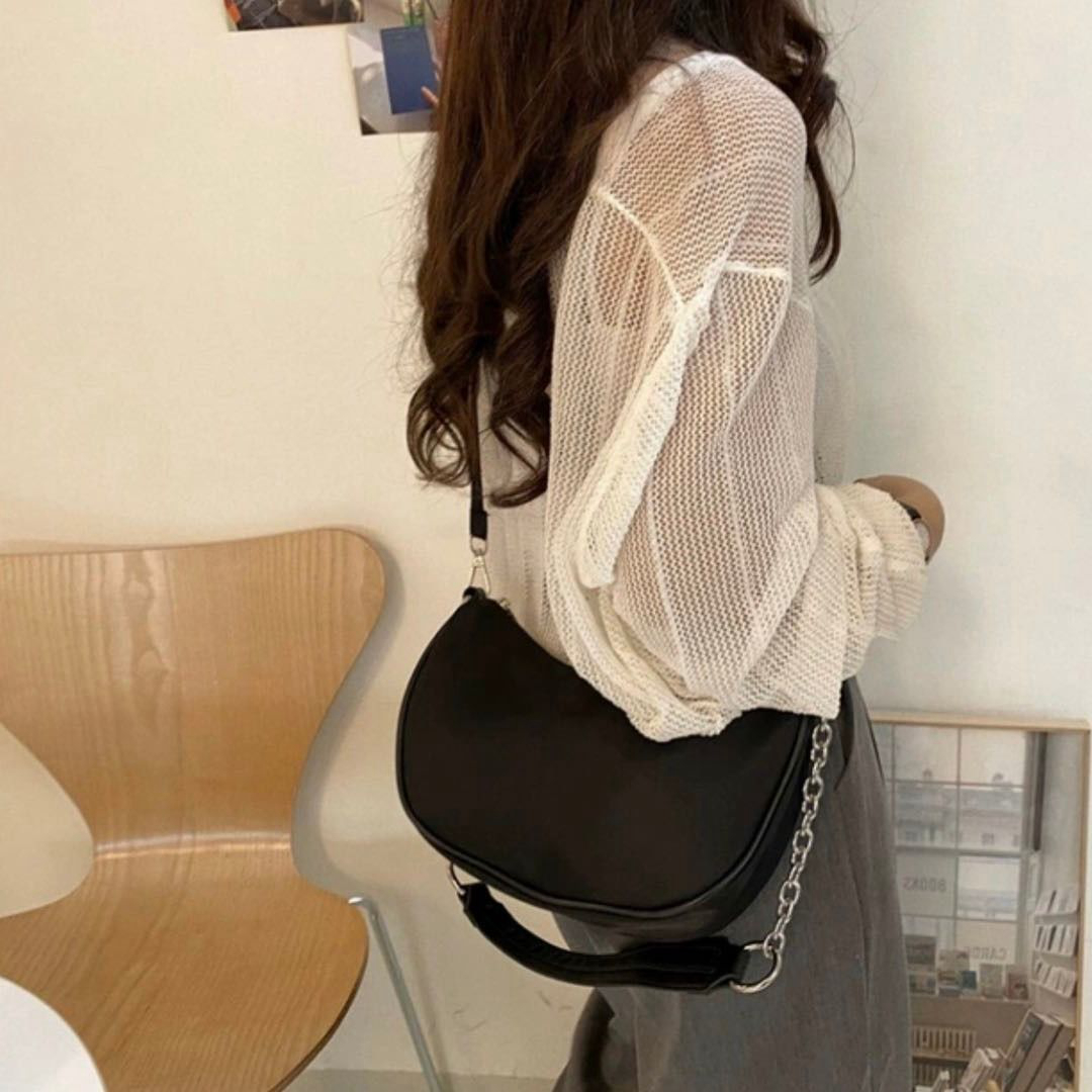 Hot girl bag 2021 spring and summer new messenger all-match black chain underarm baguette shoulder bag female mini bag