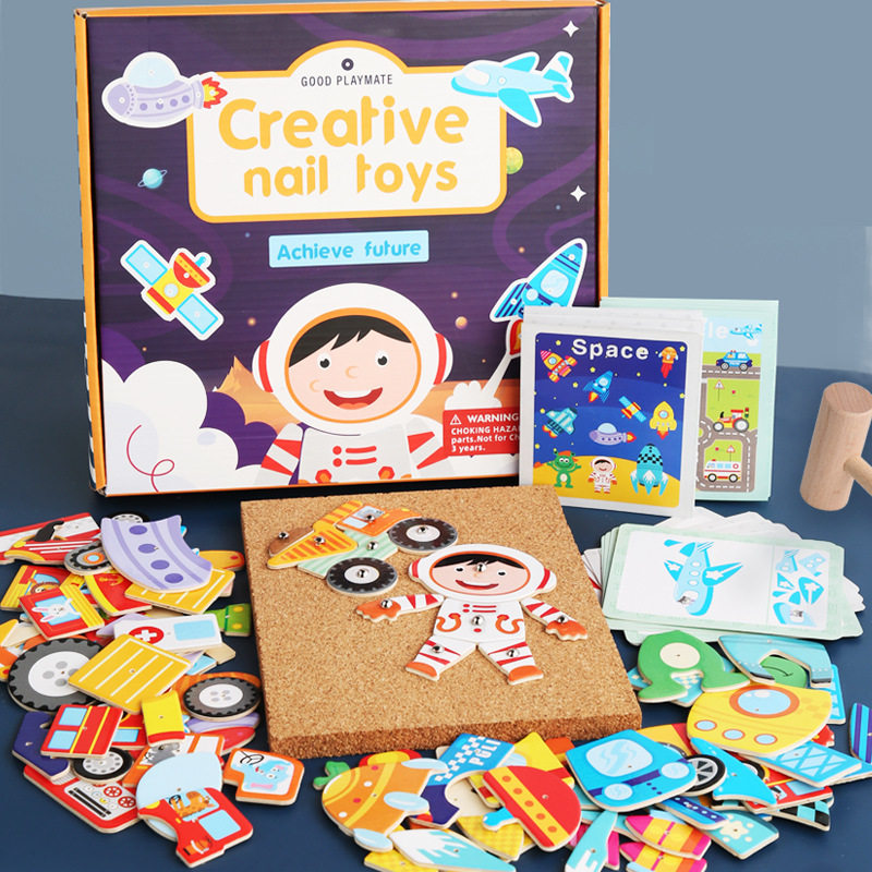 Mont Kindergarten Teaching Aids Knockout Nails Puzzle Jigsaw Puzzle Hand-eye Coordination Promotes Small Muscle Development Children's Toys