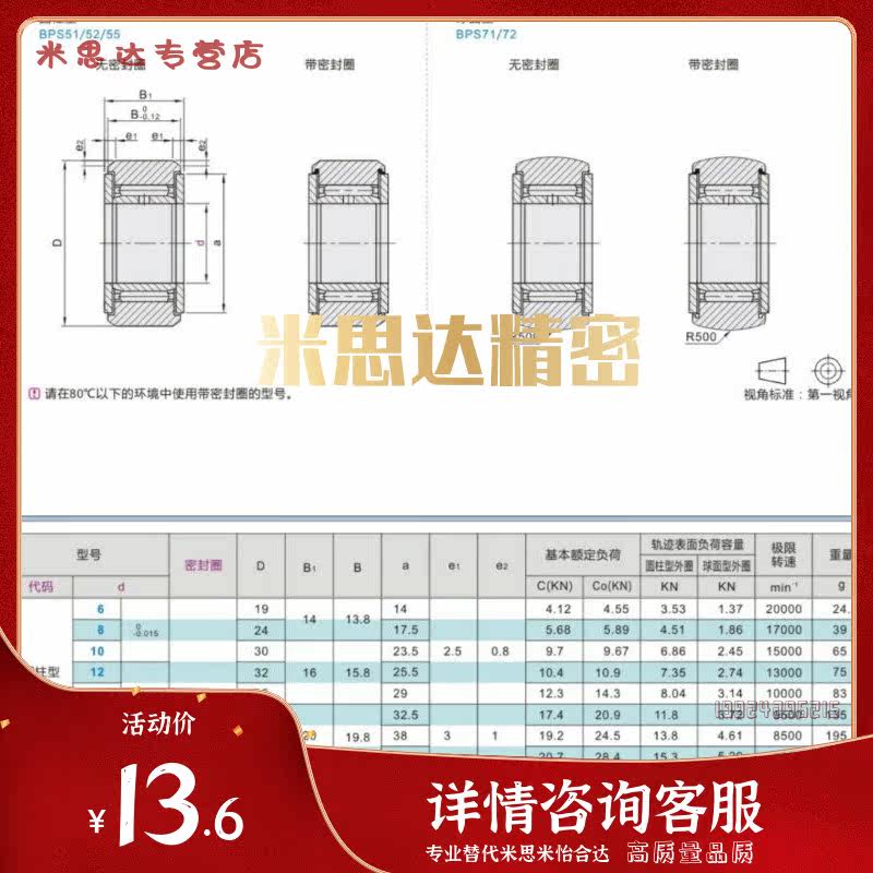 Roller bearing follower BPS71-d15-d17-d20-d25-d30-d35-d40-d45 d50-PP-d50-PP