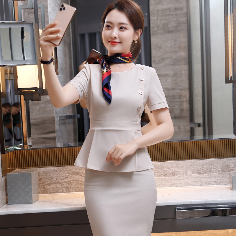 High-end professional wear women's suit summer temperament hotel front desk work wear jewelry shop beauty salon work clothes uniform