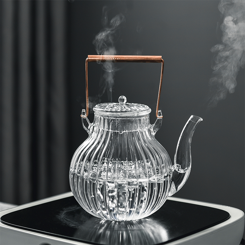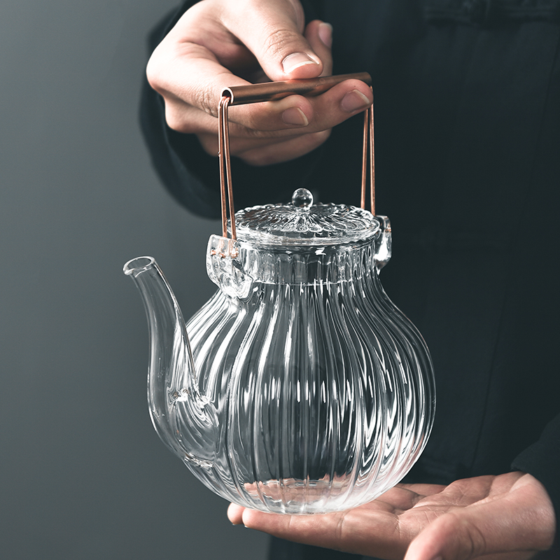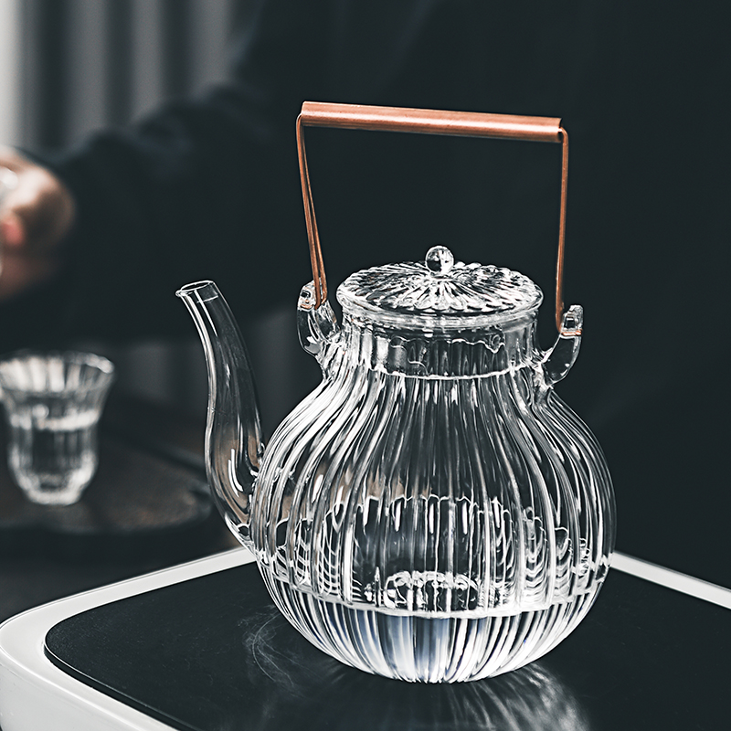 High temperature thickened glass teapot large-capacity copper handle lift beam teapot black crystal furnace tea maker kung fu tea set
