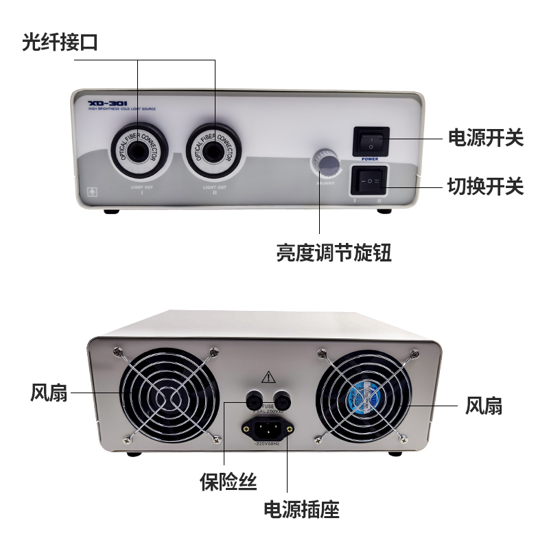 Multipurpose optical ear, nose and throat Oral medical cold light source XD-301-250W Lighting double lamp Industrial endoscopy