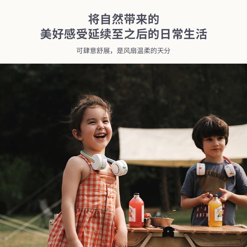 zoyzoii Halter neck small fan Children's usb charging fan Lazy usb rechargeable leafless hanging neck student mini portable portable portable leafless big wind super silent