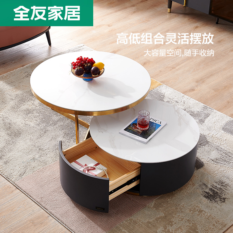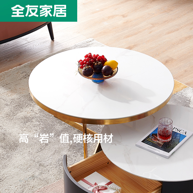 (rockboard table face) High round tea table golden short round tea table combination TV cabinet main cabinet (rock board table face) high round tea table golden short round tea table (rock board table face) combined TV cabinet main cabinet
